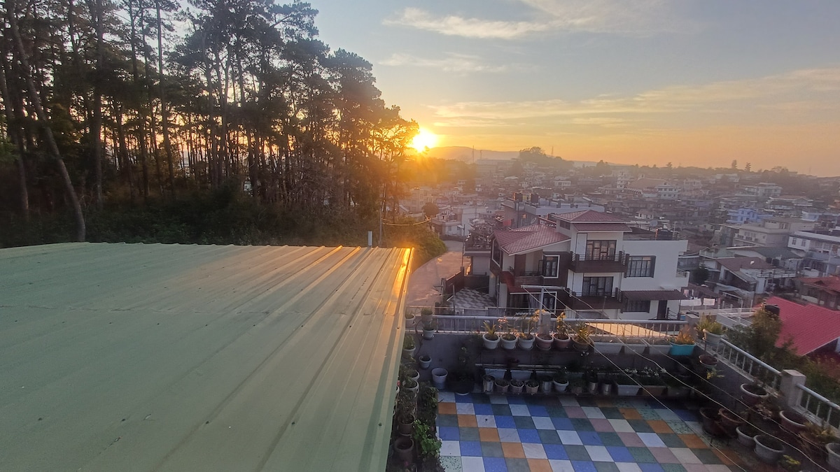 入住山頂民宿,體驗當地人的生活。 兼具兩者優點: 1.位於市區範圍內 2.四周綠意盎然 它位於安靜的位置,溫馨、私密、安全和乾淨。 景觀迷人,俯瞰城市,可欣賞日出和日落的美景! 這個地方非常適合那些想放鬆身心的人,同時距離繁忙的區域不遠! 距離警察市集- 8公里 距離Laitumkhrah - 4.5公里