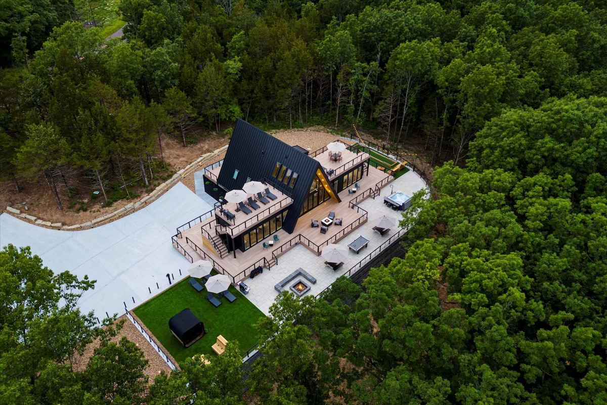 在密蘇里州赫爾曼的 Seven Acres Escape 與您的親友重新建立聯繫,這是中西部最豪華的三角屋! • 5 間獨特套房,配有加大雙人床和獨立浴室,讓您深度睡眠 •在您的私人按摩浴池、桑拿房、瑜伽、火坑和休息空間中享受完全的寧靜 • 在屋頂露台欣賞日出、星空,與親友交流 •劇院內有酒吧、遊戲機、PS5、撞球桌、地掷球等無盡樂趣 • 透過落地窗,欣賞大自然的寧靜 把握機會,預訂難忘的住宿體驗。