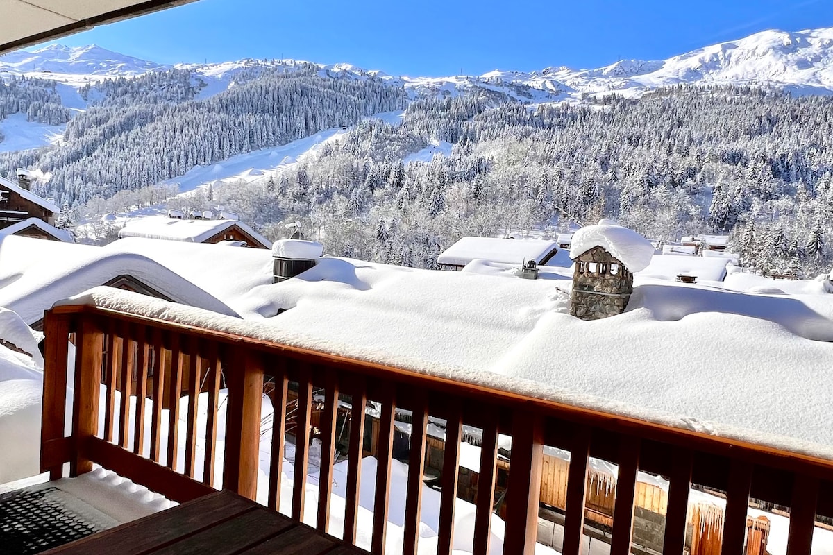 這間公寓地理位置完美,距離梅裏貝爾市中心僅幾公尺。 您可以輕鬆前往商店、餐廳和度假村活動,同時享受寧靜安靜的環境。 距離山坡僅幾步之遙(步行4分鐘即可抵達第一坡道,步行6分鐘即可抵達滑雪學校ESF ) ,您可以輕鬆前往滑雪纜車和廣闊的3 Vallées滑雪區。 入住這間公寓意味著位於梅裏貝爾市中心的舒適和歡樂。