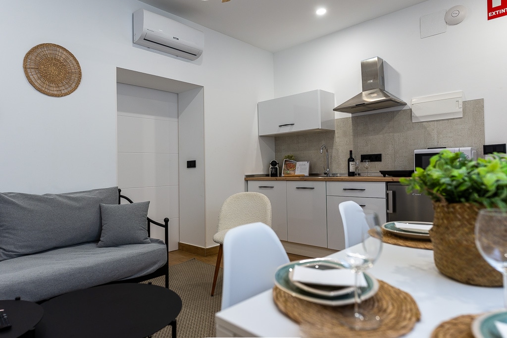 Apartamento de 1 dormitorio y sofá cama, salón_cocina y baño, en el Centro de Mérida. Ofrecen fibra optica y presentan una decoración moderna. Se encuentra a 3 minutos a pie de los principales monumentos de la ciudad, Teatro y Anfiteatro Romano y Museo Nacional de Arte Romano. Dispone de cocina totalmente equipada: microondas, cafetera, tostadora, etc.