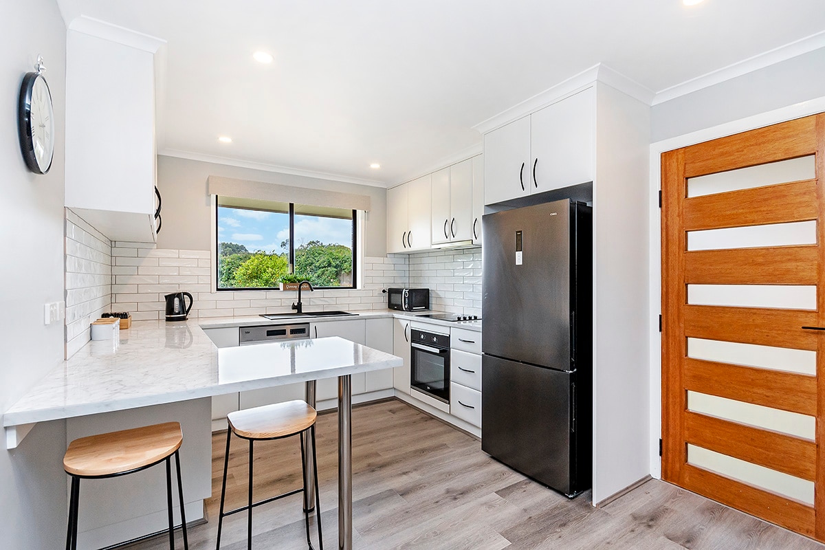 這是一個位於安靜地方的美麗 3 臥室豪華房源,可欣賞波特蘭灣 (Portland Bay) 的無阻海景。 在私人露臺上欣賞美麗的日出,或享受燒烤和葡萄酒。 距離當地海灘很近,步行即可抵達。 一樓有廚房、休息室和用餐區。 主臥室配有標準雙人床和套房浴室,2/3 間臥室配有標準雙人床,共用主浴室。 樓上有一間獨立的休息兼書房,提供了第二個起居空間。
