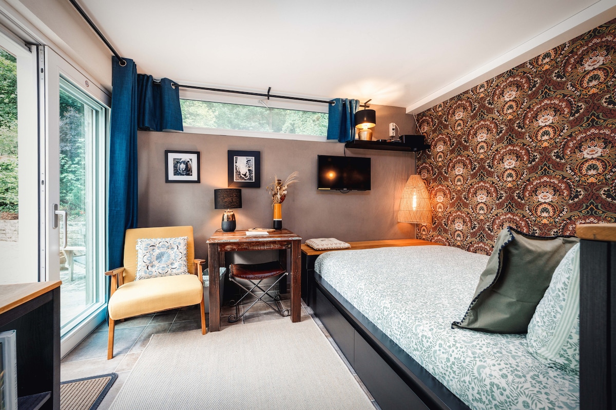 歡迎來到我們舒適的森林小木屋–一個迷人的度假勝地,舒適和寧靜等待! 室內有一張標準雙人牀、一間舒適的浴室、一臺咖啡機、WiFi和一個Bose喇叭,可播放您最喜愛的音樂。 小木屋的私人露臺提供戶外椅子,讓您放鬆身心。 附近沒有廚房,但附近有很多值得探索的好去處。 從市中心、基希貝格或火車站乘坐巴士僅需15-30分鐘。 此外,盧森堡的公共交通是免費的!