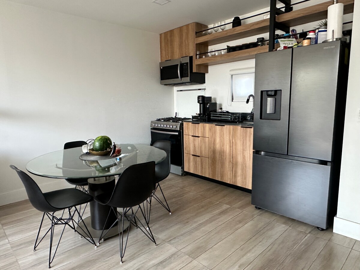 享受這個全新、安靜且非常中心的住宿的舒適。 景觀非常好,地理位置優越,距離墨西哥-美國邊境僅5分鐘。 距離充滿活力的Av. Revolución只有幾個街區。 距離餐廳、夜生活和醫療辦公室僅幾步之遙。 它有1間臥室( 1張標準雙人牀+充氣牀墊) , 1臺50英寸電視,配有應用程式: HBO、Netflix、MLB。 廚房用具、洗衣機、烘衣機和熨斗、吹風機。 24小時保安的免費停車位