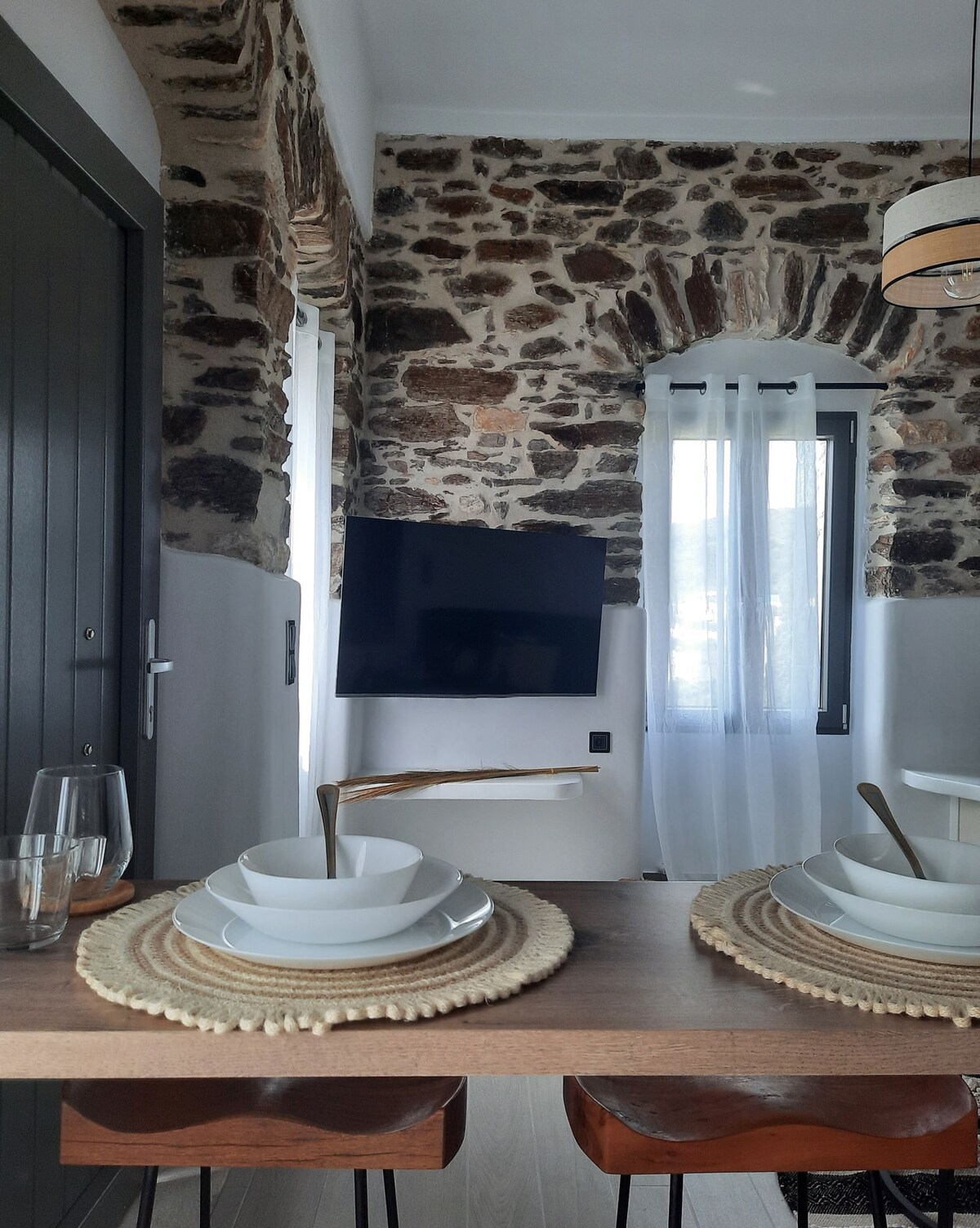 This Island Suite is an inextricable part of "Georgilas Cave House". At the time when GCH was a lively farm, “Rosy Ipostatiko”; along with its twin "Velvet Ipostatiko", were serving as warehouses for the storage of the farm's production. Today, they have been converted into two picturesque Cycladic studios, which can perfectly accommodate couples which seek romance, relaxation, privacy and comfort, as well as young parents!