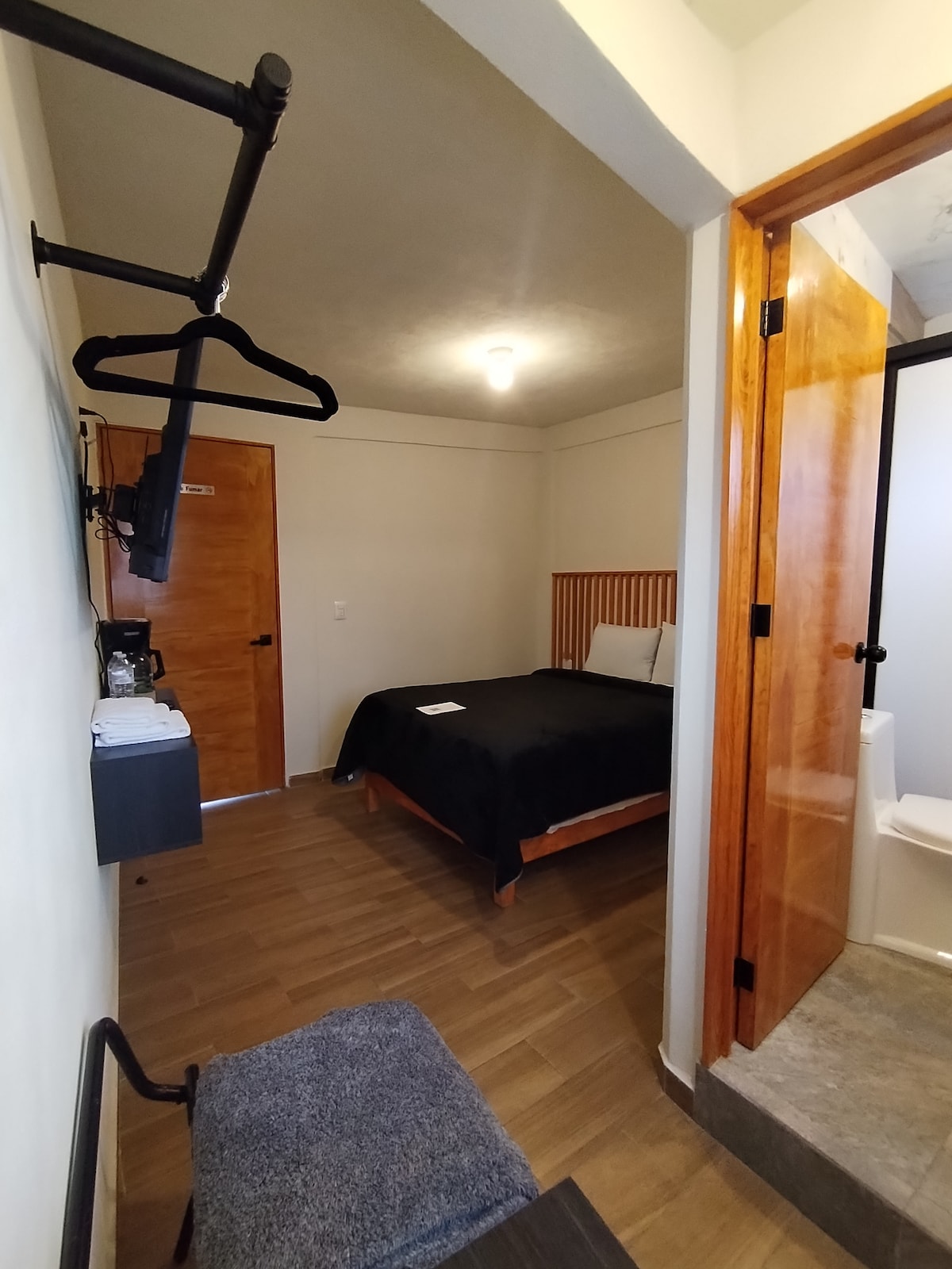 在Hoja Santa Hospedaje,我們有這間現代化舒適的房間,配有雙人床、電視和極佳的照明。 🚿 設有淋浴間的全套獨立浴室。 ☕包括咖啡機、毛巾和舒適安靜的氛圍,非常適合休息。