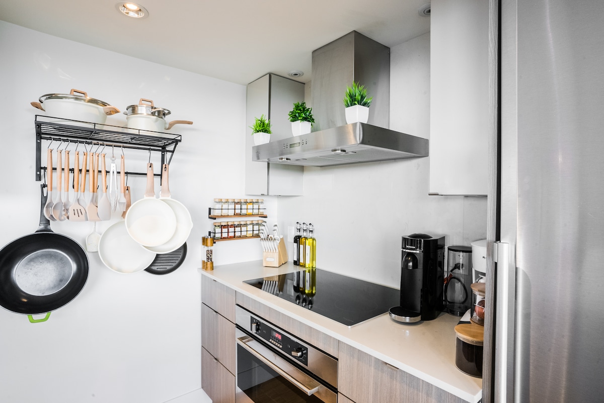 这间宽敞的工作室配备了全新的家具,距离熙熙攘攘的主要街道只有一个街区的距离。在那里,您可以前往各种咖啡馆、啤酒厂、餐厅、交通枢纽和夜生活场所。步行5-10分钟即可到达Main St. Science World Skytrain站,您可以乘坐列车前往YVR机场、温哥华市中心以及您想要探索的任何地方!标志性而美妙的False Creek Seawall只有几步之遥,距离市中心也只有5分钟的Uber车程。