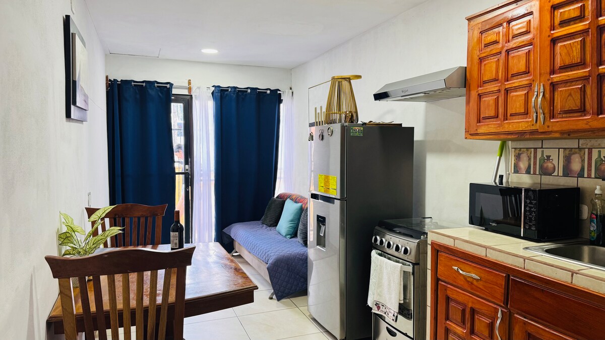 入住這間位於市中心的房源,享受時尚體驗。 - 禁區 -自動門 -含停車位 -附近的商店 -安靜安全的地區。 - 門口有保安。 公寓包括: -洗衣機-烘衣機。 -咖啡壺。 -廚房和烤箱。 -Microonda -冰箱 -空調(臥室) -臥室和客廳的電視。 -工作區域。 -客廳有沙發牀。 -免費咖啡。