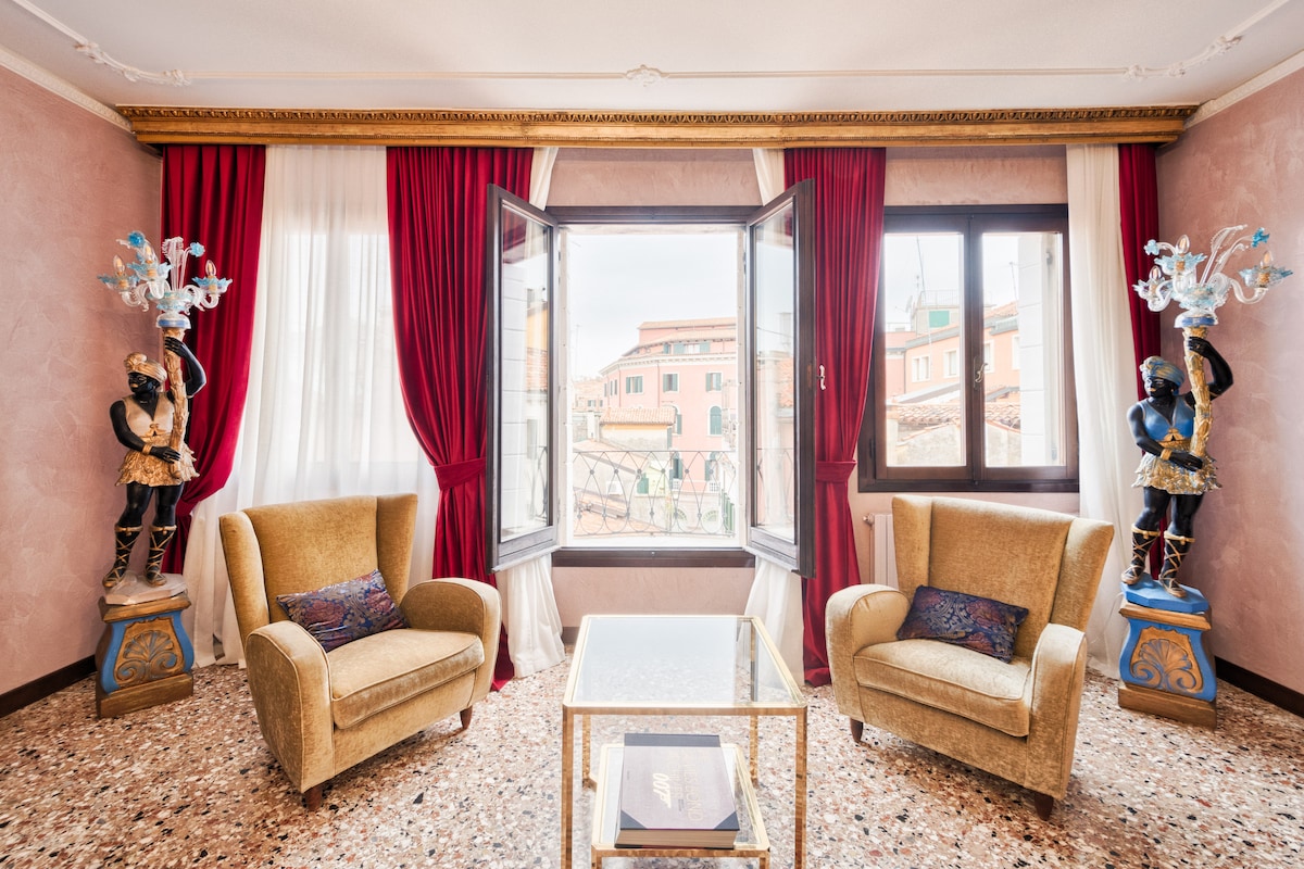 The Terazier是一間奢華寬敞的公寓,位於科斯塔宮( Palazzo Vendramin Costa )的主樓層,曾屬於威尼斯最具影響力和最重要的貴族家庭之一。 公寓圍繞著一個大客廳,在Rio di Noale運河上有一個浪漫的陽臺,還有可俯瞰Rio di Santa Fosca的大窗戶。