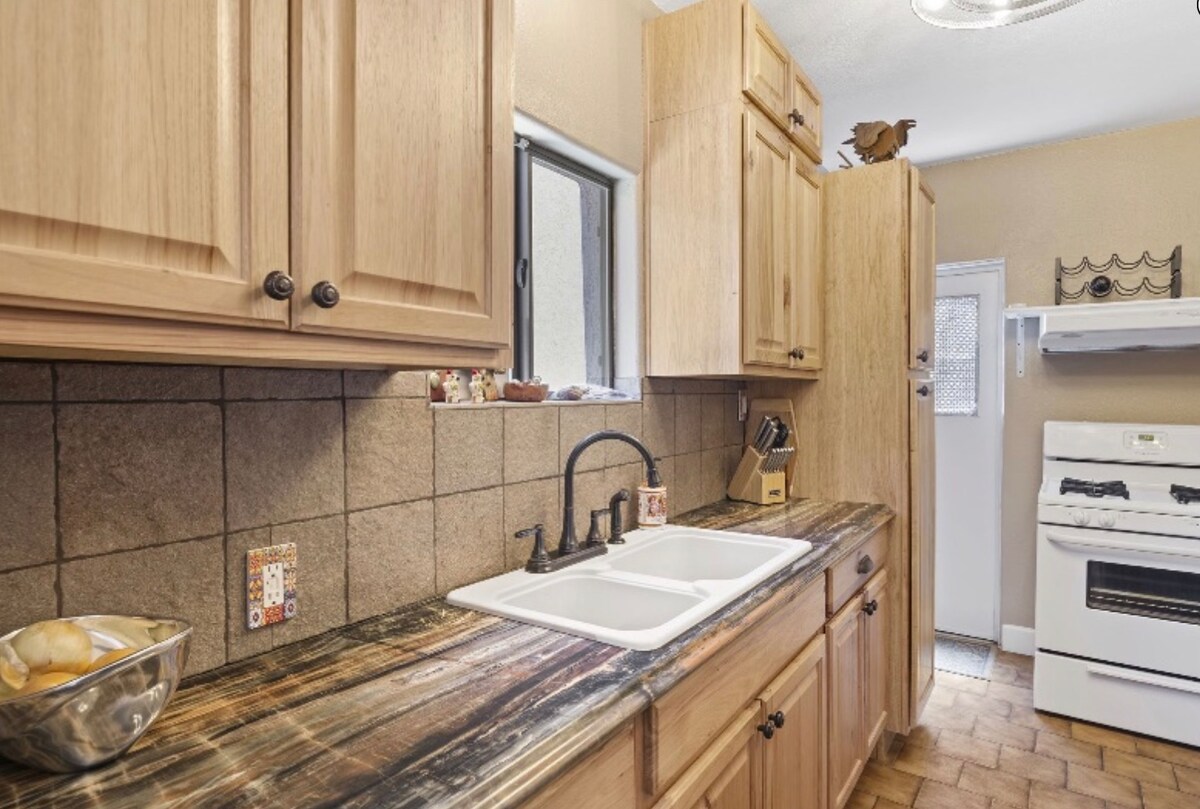 在這個安靜、重新改造的2間臥室、1間浴室+書房的房源中放鬆身心,配有中央空調和無水箱熱水器。 令人驚嘆的山景和日落。 最多可供8位房客入住。 配有大床、推拉床、沙發床、日式床墊,如有需要,還有充氣雙人床墊。 位於安靜、安全的街區,可輕鬆前往60號高速公路,可輕鬆前往鳳凰城區域。 Superior是一個銅礦小鎮,是許多西方電影的所在地。 享受登山、騎單車、全地形車和其他戶外探險。