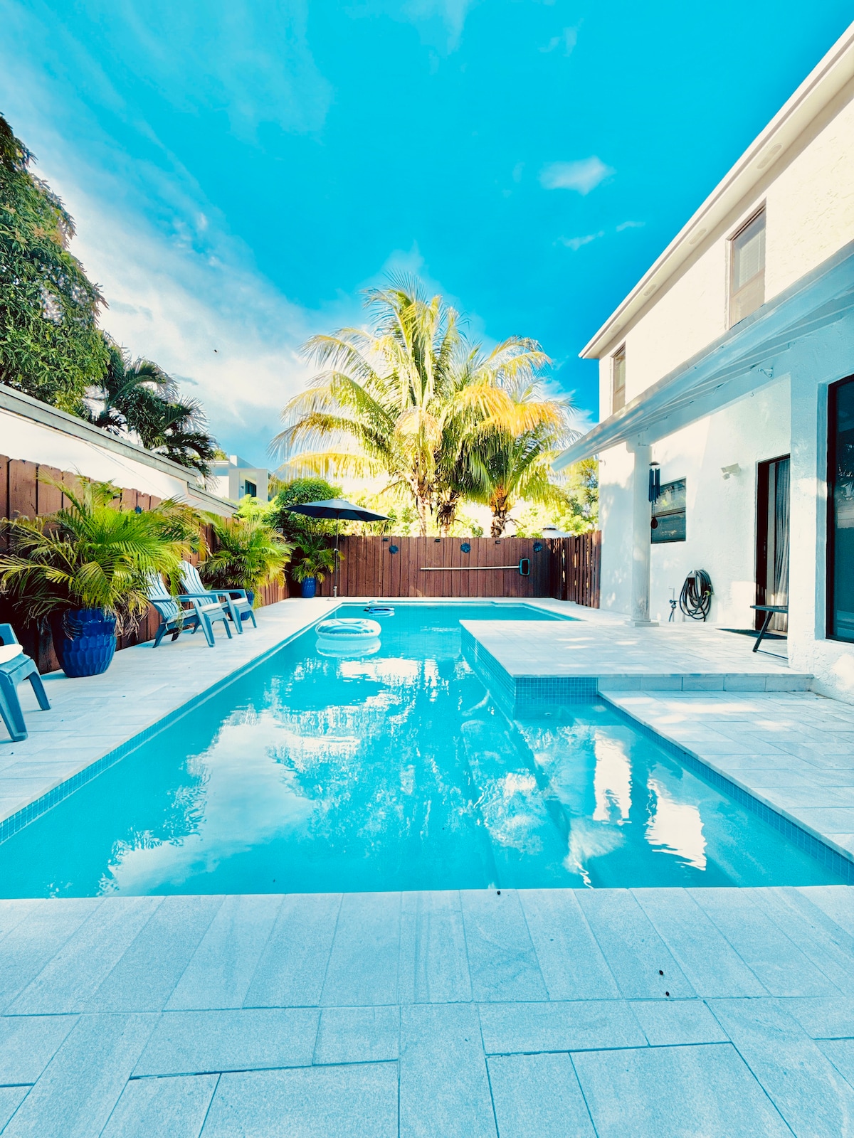 Your Miami oasis: a stylish 4BR/3.5BA duplex sleeping 10. Bask by the private heated pool, sip coffee on shaded patios, and cook in a fully equipped kitchen with coffee station. Fast WiFi, Smart TV, AC, washer/dryer, and driveway parking. Family-friendly (crib + pack ’n play). Pet-friendly with approval/fee. Close to Brickell, Miracle Mile, Wynwood, Coconut Grove, Coral Gables and beaches. No parties or smoking.