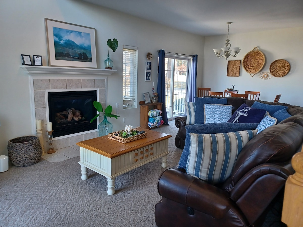 歡迎來到 James Dēne 17,你在新布法羅的終極度假勝地!這間時尚的三層樓房源有兩間加大雙人床套房,配有私人露台、舒適的壁爐和屋頂露台,可欣賞密歇根湖的日落景觀。在大後院的營火坑旁放鬆身心,或在俱樂部會所享受室內泳池和按摩浴池。這間房源非常適合家人和朋友入住,提供舒適、迷人的空間,讓大家可以聚在一起。立即預訂住宿,體驗最棒的度假生活!