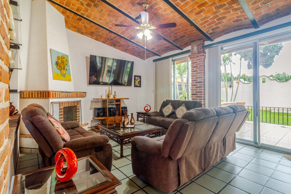 位於La Floresta, Ajijic, Chapala,距離Hotel Real de Chapala一個街區。配備家具,可隨時入住,漂亮的露臺和大花園、網路、音樂、3台電視、配備洗衣房、周圍區域漂亮安靜