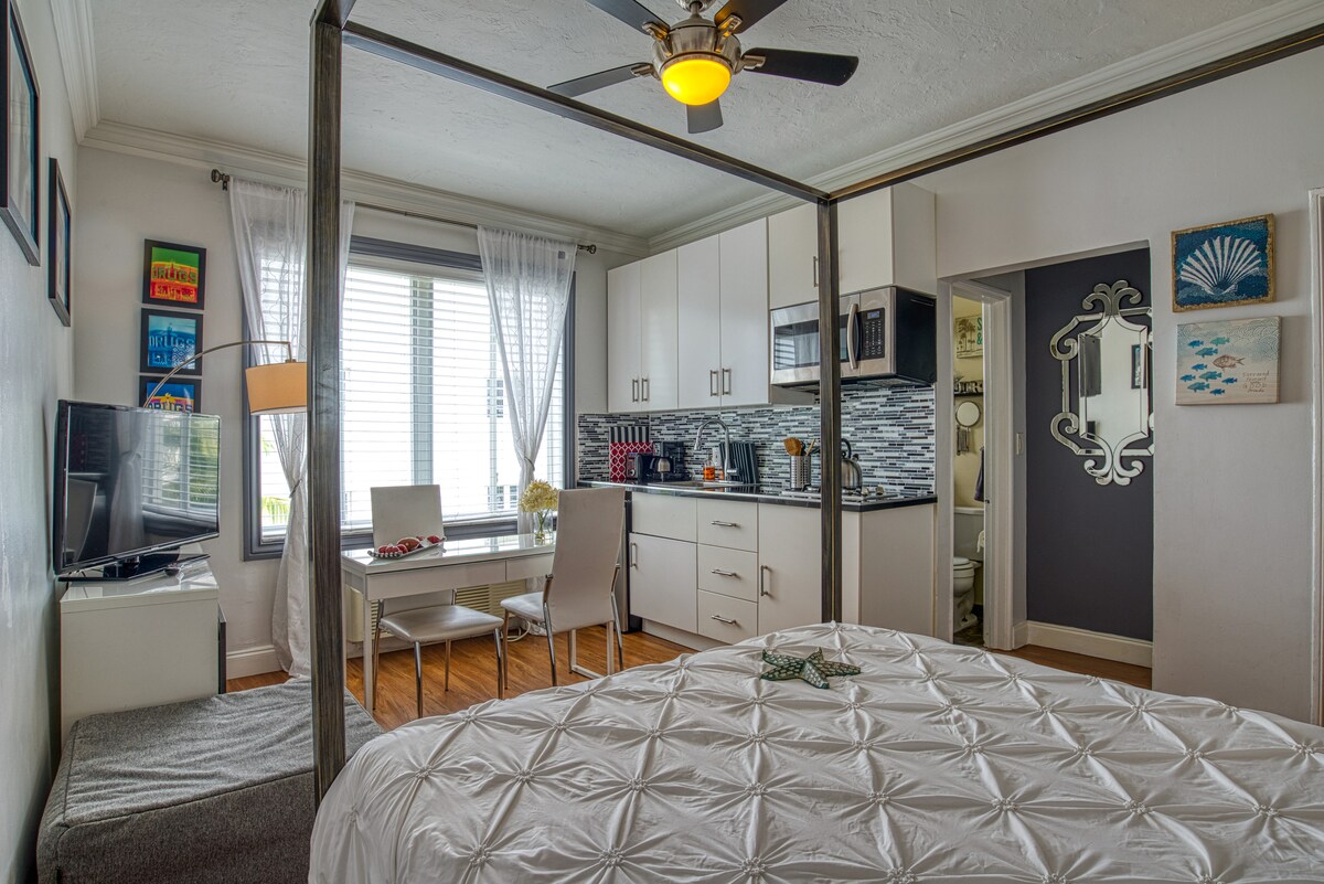 Beautiful Studio across from the beach with an amazing king size bed , 5 min uber ride to lincon road and all the action in south beach.You’ll love my place because it's very clean it’s comfortable with an amazing bed , Art Deco building made the room feel like a comfy and elegant . The room is spacious and will make you feel right at home.. My place is good for couples, solo adventurers, business travelers, Been a super host for 8 years now Looking forward to host you ! Thanks 🙏