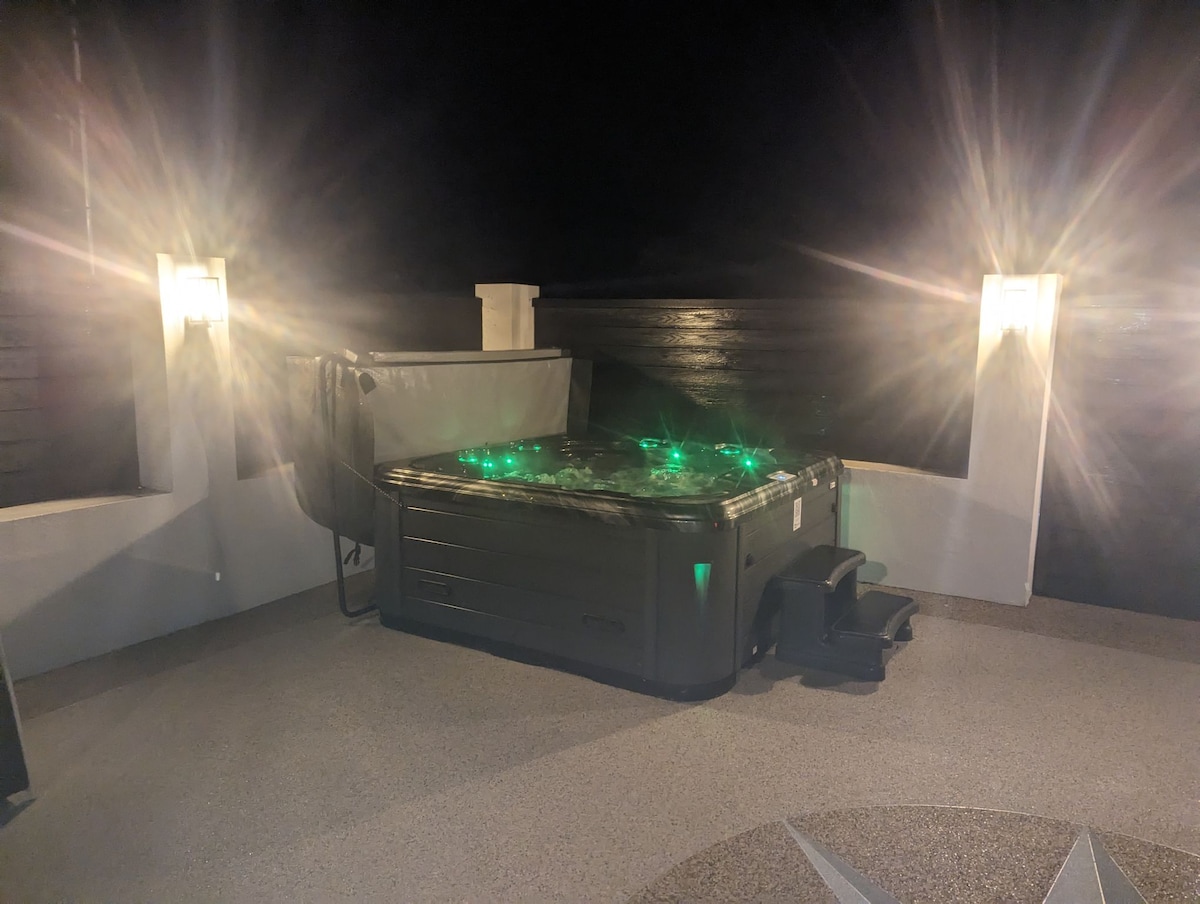 配有按摩浴缸的小木屋 + 戶外電影院,步行可抵達商店和酒吧