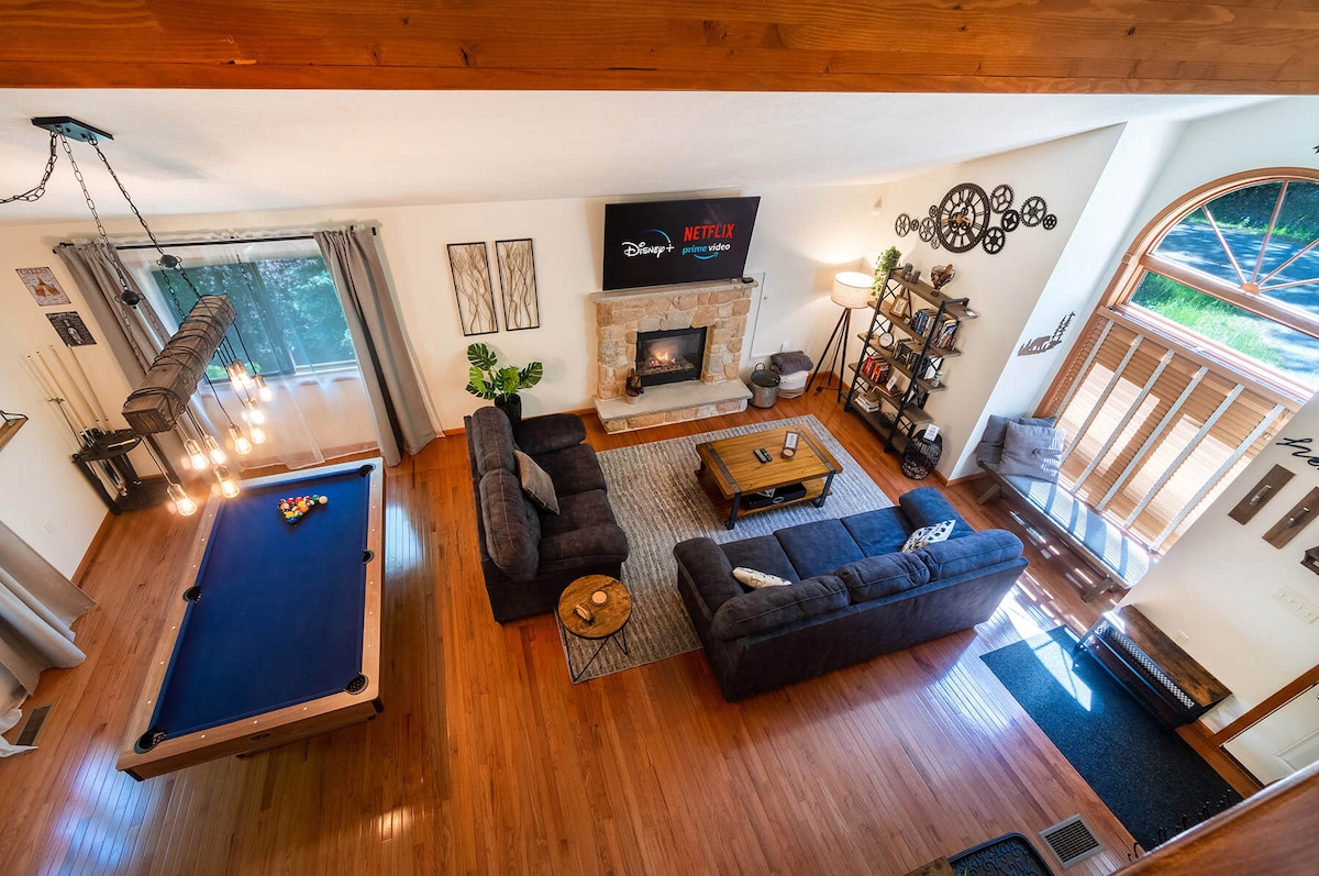 Welcome to Serenity Falls! A true gem mountain house with its own private waterfall! Large deck with a private hot tub, dining area, and magical atmosphere with entertainment for all. This retreat also offers a full-size billiards table and a game room with PS4, darts, and other toys for all ages. Enjoy delicious meals with loved ones on the spacious deck with a BBQ grill and take in the breathtaking Poconos scenery. What else can you ask for?