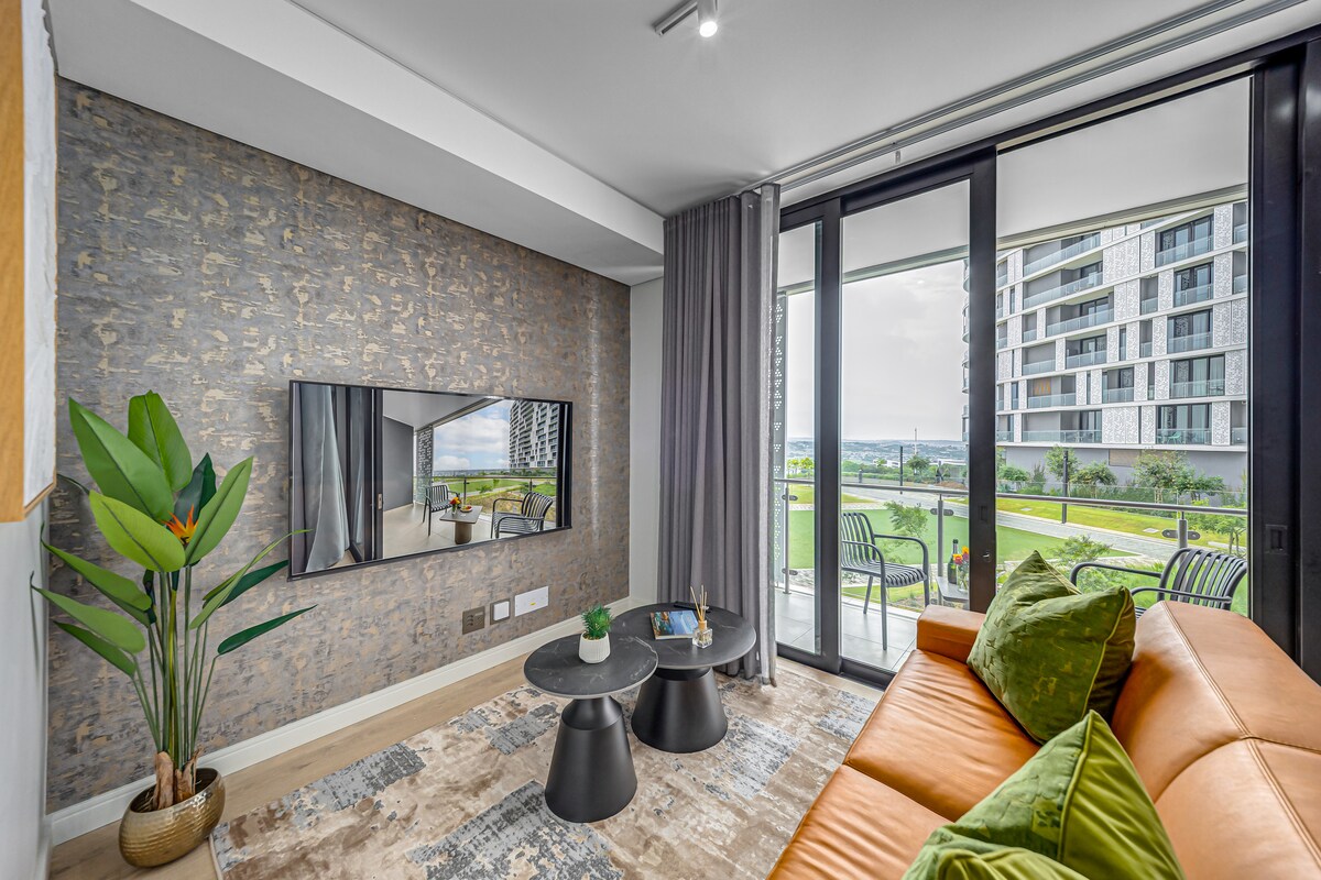 Carlswald的2間臥室公寓,24小時保安保護,讓您住得安心。 房源提供免費Wi-Fi ,最多可供2小時的停電。 休息室配有天鵝絨沙發和Daisy天鵝絨椅子,可欣賞Netflix、DStv或陽臺的美景。 浴室配有淋浴間、浴缸和洗手台。大樓的俱樂部設有遊泳池和健身房。 除了4位成人房客外,歡迎兒童入住。