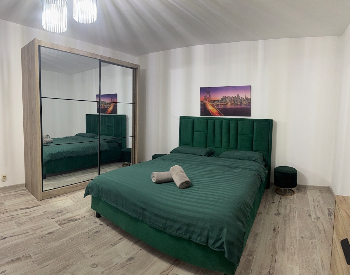 公寓位於市中心,地理位置優越,靠近克拉約瓦聖誕節集市、舊城區和藝術博物館。 它提供美麗的中央區景觀,並於2025年進行了現代化改造:新床和衣櫃、舒適的沙發、新空調、洗衣機和高級設施,提供奢華舒適。 您可以在客廳放鬆身心,或在舒適的臥室休息,配備您需要的一切設施,讓您感覺就像在家一樣。