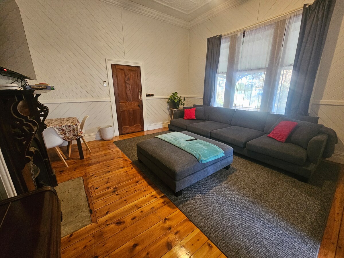 A unique and tranquil getaway! 5 minutes from the river, CBD, Kings Billabong, golf courses & more. Enjoy the beautifully restored heritage suite with a bubble bath,wine,and charcuterie (additional). Adjoining the main house but completely secluded- own driveway, carport, entrance, bedroom, bathroom & living room. Can meet us to ask questions about Mildura or enjoy your stay in peace. Kitchenette includes a fridge, microwave, kettle,toaster, plates etc. charcuterie $60 charcuterie & wine $85