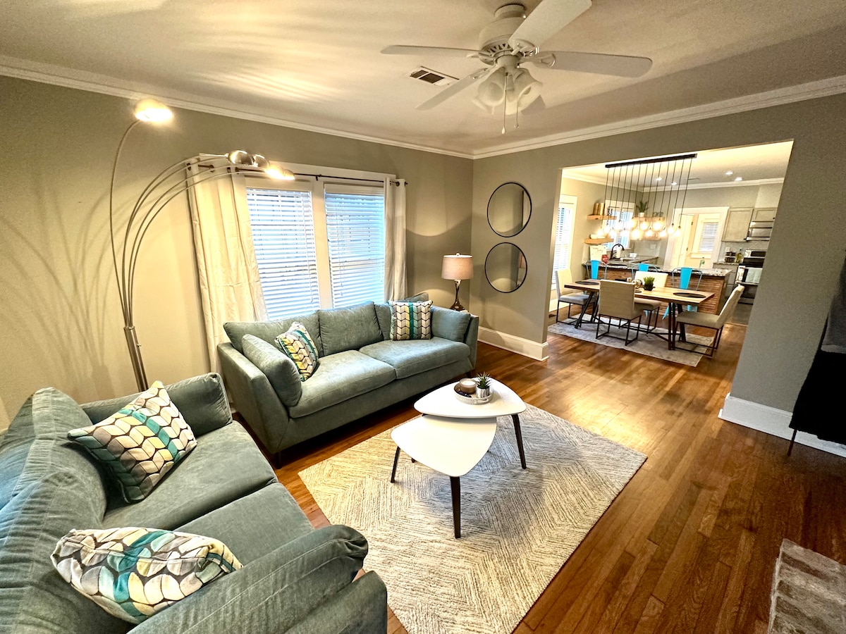 ⛲ Centrally located in the oldest neighborhood in Montgomery. ❇️ 12 foot ceilings, 150+ year old hardwood floors, gourmet kitchen appliances, luxury bathrooms, 14 inch hybrid mattresses, TVs in every room. 🚶♂️➡️ Lovely walkable neighborhood full of children's voices during the day and peaceful quiet at night. 🏙️ 5 minutes to downtown, MAFB, EJI, Legacy Museum, I65, I85, and MPAC.