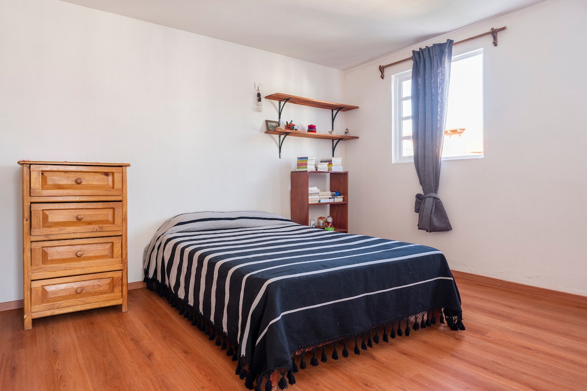 探索這個溫馨明亮的折衷空間。非常適合探索這座城市、在附近做生意或學習。 外出時,這裡是您休息和感受家一般的舒適的最佳去處! 位於市區南端的Tlalpan ,靠近國立大學、「Azteca」體育場、Six Flags Mexico和Cuicuilco :美國最古老的金字塔。步行即可抵達商場、餐廳、電影院、醫院等。