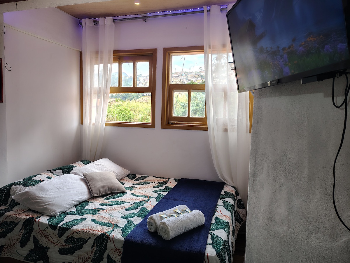 這是一棟擁有百年歷史的房屋,建於金礦開採時期,經過修復,並以鄉村風格進行裝修,配有家電、餐具和廚房用具、床單和浴巾、WiFi網絡、停車位,距離歷史中心(蒂拉登特斯廣場)約1200米,可俯瞰奧魯普雷圖及其周圍山脈的全景。可容納 6 人。可容納更多房客,但需事先諮詢。