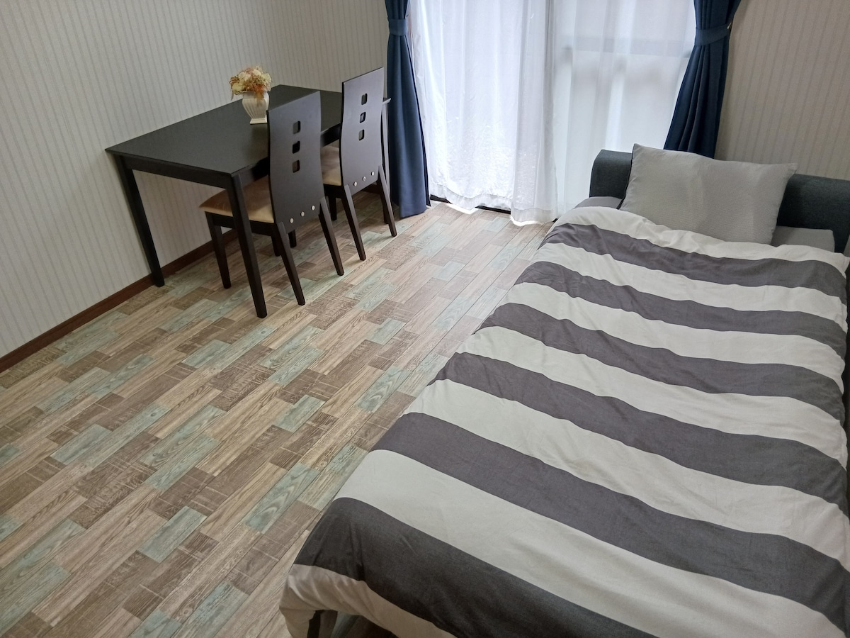 こちらの部屋はアパートの1室です。 7畳のベットルーム・キッチン・バス・トイレを宿泊者専用で利用できますので完全にプライベートが確保されています。 部屋には、シングルベッド(1台)があります。2人で宿泊する場合、布団一式(Japanese mattress)を、ご用意いたします。 洗濯機・冷蔵庫・電子レンジ・電気ポット、フライパン・食器類がありますので、自炊もできます。 浴室には、シャンプー、リンス、ボディソープ、ドライヤー、フェイスタオル、バスタオルを用意しております。 室内では、無料Wi-Fiがご利用できます。 静寂な住宅街にありますので、長期滞在型向けのお部屋となります。 自転車を無料で貸出しています。 自転車をご利用の方は、予約時にお申し出ください。 また、ホストが、タクシーを予約するサービスも行っています。 日本の旅を楽しめるようサポートいたします!