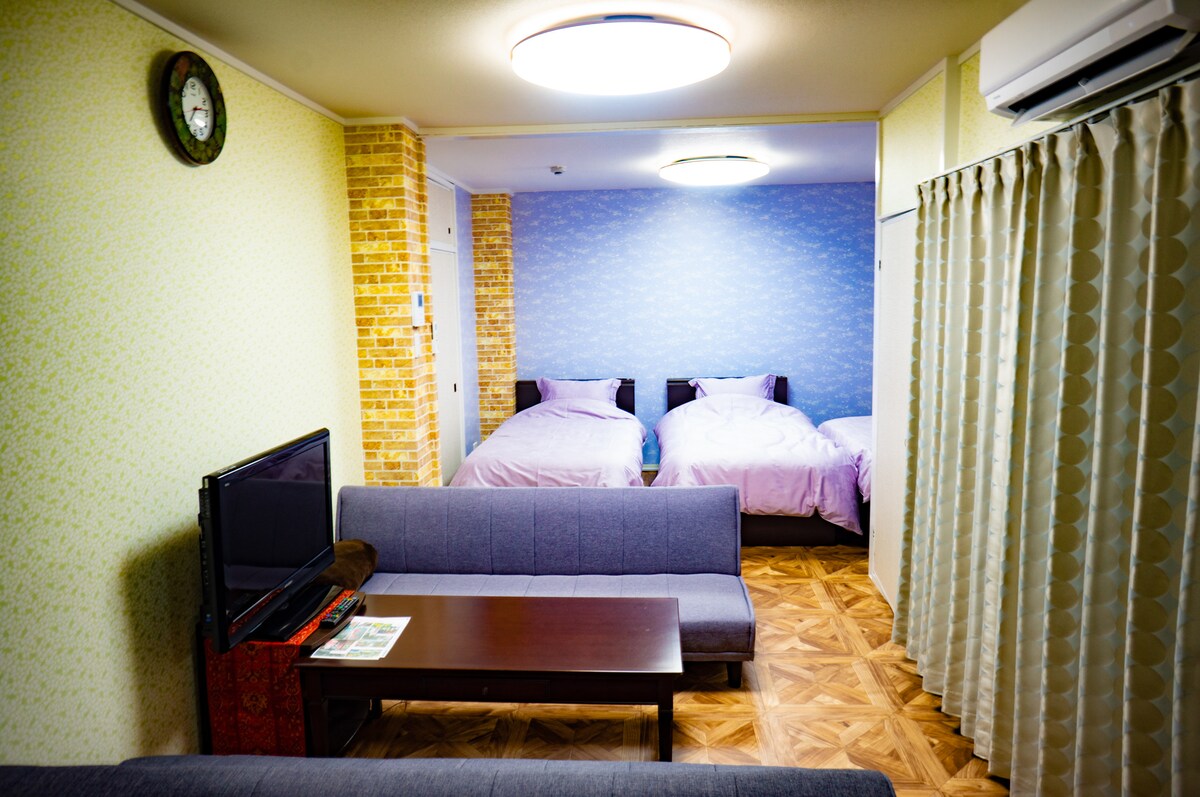 可供 4 人入住。 電視包括網路電視。 AmazonPrimes由BlueHouse簽署,因此您可以自由觀看。 這套公寓在二樓,沒有電梯。 我們提供大多數設備與服務。 沙發牀為180公分,不太舒服。 淋浴間沒有浴缸。 有火車的聲音。 隨著夜晚的到來,價格會降低 ☆當您在夜間關燈時,您可以欣賞一段時間發光牆的景觀。