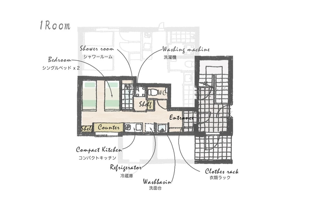 2つのシングルベットをご用意しております。リフレッシュの旅。ゆったりのんびりお過ごしください。 ※宿泊料金について 4/1~12/30:1棟あたり1名様~3名様までは同一料金となります。 12/31~3/31:1棟あたり1名様~5名様までは同一料金となります。 【 身分証明書について 】 宿泊者様全員に氏名・住所・職業等のご入力と身分証明書のご登録をお願いしております。日本法令に基づいた対応です。外国籍の方には上記に加えて、国籍・旅券番号の記載をお願いしております。 【「駒子の湯」温泉券 無料プレゼント】 3月31日まで、「駒子の湯」温泉券を人数×1泊分ご用意しております。 この機会にぜひ越後沢の温泉をお楽しみください。