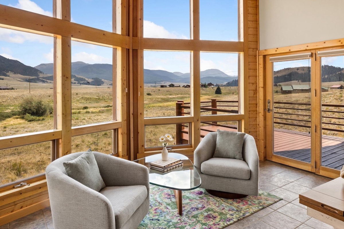 This cabin located 10 min west of Creede has amazing views of the Weminuche wilderness and is walking distance to world class fly fishing on the Rio Grande river. This cabin gives you easy access to outdoor activities and Creede, including the Reparatory Theater. This is the perfect base camp for your next adventure. Wake up to elk grazing in the meadow, explore during the day, and relax at night in this custom built cabin with unique features from the local area.