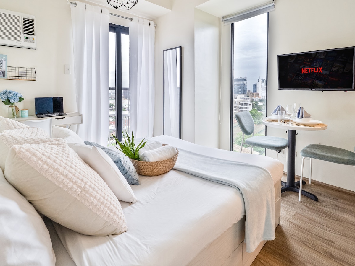入住這間位處中心地段的房源,享受這裡的時尚品味。這間公寓單位位於靠近麥克坦國際機場,非常舒適、現代化且充滿活力,讓您放鬆身心。靠近餐廳、咖啡廳、洗衣店、商場和超市等一切設施。 -距離宿霧麥克坦機場3-5分鐘路程 -兩張雙人床48x75英寸 -高達 100 mbps 的 WiFi 連線 -免費 Netflix -完整的炊具和餐具 -我們放鬆的陽臺上的戶外用餐空間