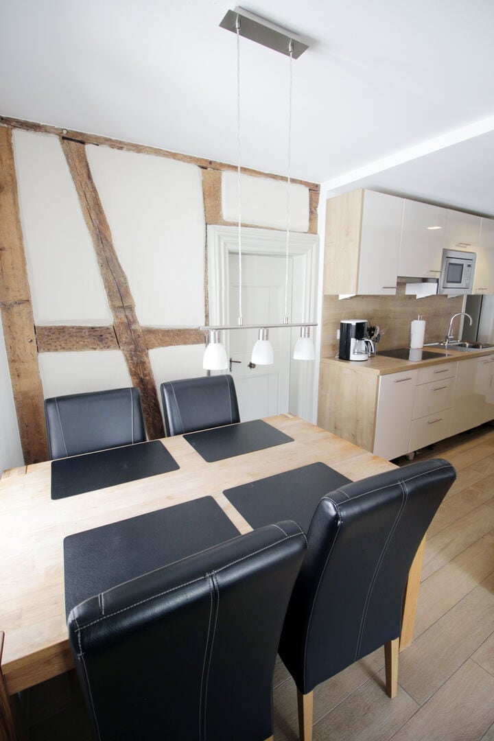 This charming apartment on the first floor is ideal for families, accommodating up to four people. It combines modern amenities with historical elements and offers a beautiful view of the church and the Mosel River. Please note that the apartment is not wheelchair accessible. The minimum rental period is 3 nights. Facilities: 2 bedrooms, each with 2 beds Living area with dining and kitchen (induction stove, refrigerator, dishwasher) Spacious bathroom with walk-in shower TV i