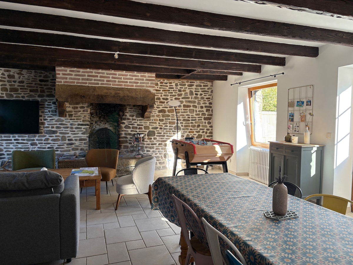 一棟美麗的老石匠小屋,坐落在昏昏欲睡的小屋邊,距離田園風格的Rance河口幾百碼。 冬天舒適-有2個木爐和迷人的廚房/用餐延伸。 夏天很完美,有巨大的花園、露臺和樹林。 我們一次只將整個房源出租給一個團體。 適合家庭或最多8位成人的大型團體入住,最多可入住。