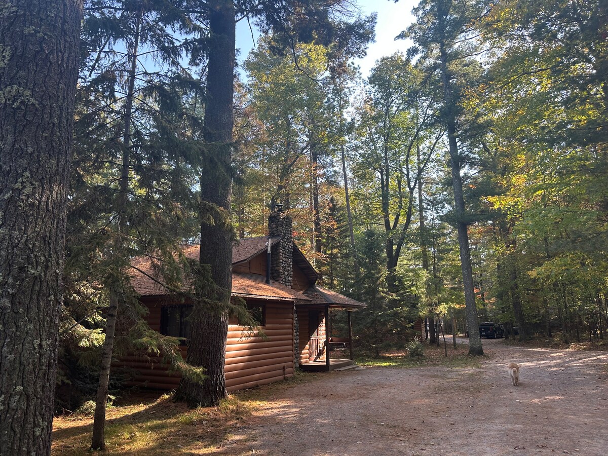 舒適的房源,配有溫暖的燈光和油漆顏色,以及創意的Northwoods裝飾,透出現代氣息。 設備包括高速網路、不鏽鋼電器、咖啡機、前置洗衣機和烘乾機、串流服務/Apple TV、3臺平面電視、2個壁爐、中央空調和高效率熔爐。 房源位於4英畝的林地上(非湖畔),靠近一條維護良好的砂石路。 非常私密。看不到鄰居。 野生動物豐富。狗可以入住,需經批准並收費。