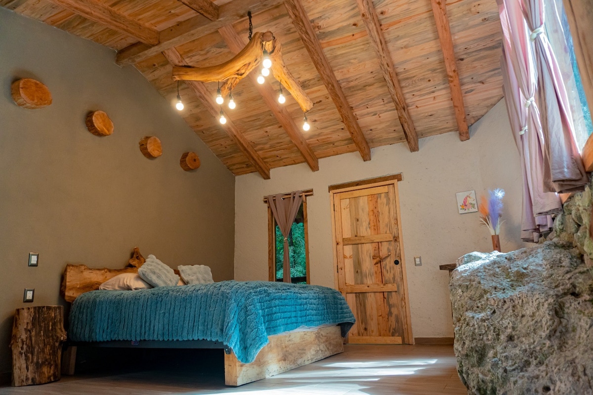 Ven y conoce la más bella cabaña Boutique del Parque Nacional del Chico, arquitectura moderna donde se funde el hierro, la madera y el barro cocido, en medio de un bosque rico en oyameles , ocotes y fauna silvestre. Un lugar lleno de quietud y paz que hará relajar tus sentidos y donde por las noches sentado al fuego de la chimenea y un par de copas de vino harán una velada romántica inolvidable o por las mañanas ver juntos el amanecer en nuestro increíble mirador hará de tu visita tu lugar ideal