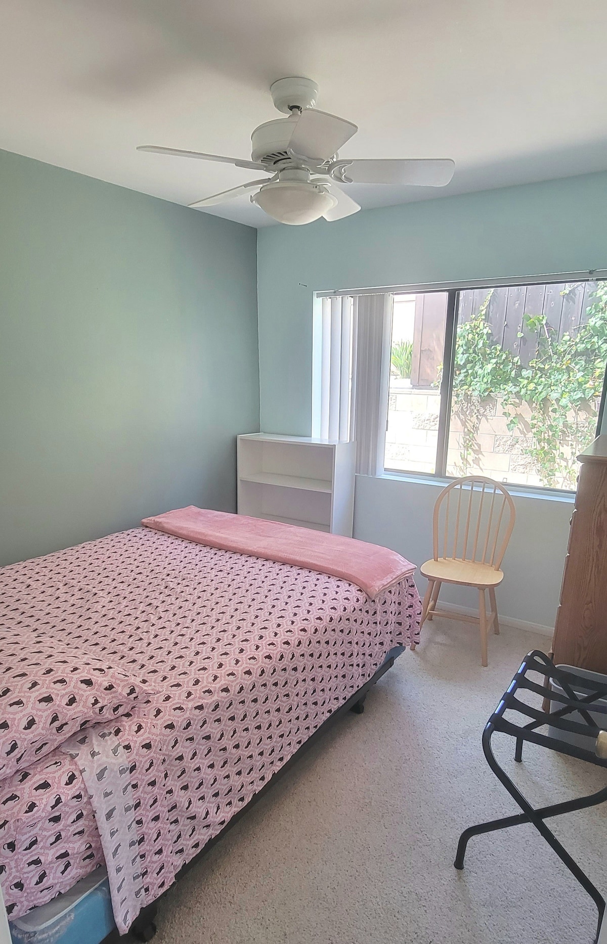 獨立房間,附設獨立專用衛浴。雙人床。禁止12歲以下的兒童入住。 禁止吸煙、禁止吸毒。 我們有兩隻狗(非過敏性狗) 基於隱私與安全原因,房客只能上樓。 請在樓下進食,以避免螞蟻、油漬和溢漏。如果將食物帶入屋內,請使用樓下的餐桌或在露臺外用餐。 請勿將濕毛巾放在家具上、衣櫃中或房間的床單上。