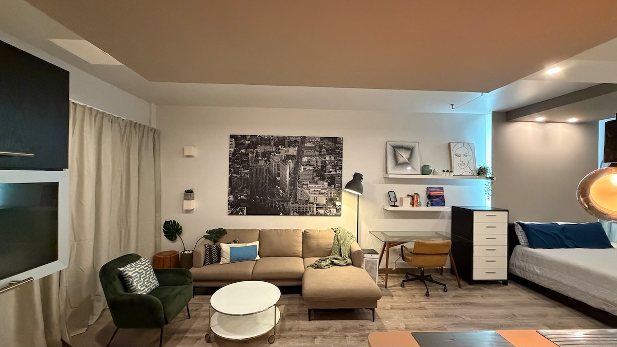入住這間位處聖胡安聖圖爾塞中心地段的房源,享受這裡的時尚品味,距離 Bad Bunny 將會出現的體育場只有幾分鐘路程。 在這個位於藝術區的城市公寓中體驗真正的波多黎各文化。步行即可抵達許多餐廳、屋頂和酒吧,開車即可抵達海灘。距離聖胡安機場和舊聖胡安僅10分鐘。 可俯瞰城市和海灣的美景。全新翻修、開放式廚房和客廳概念佈局,配有3間臥室。