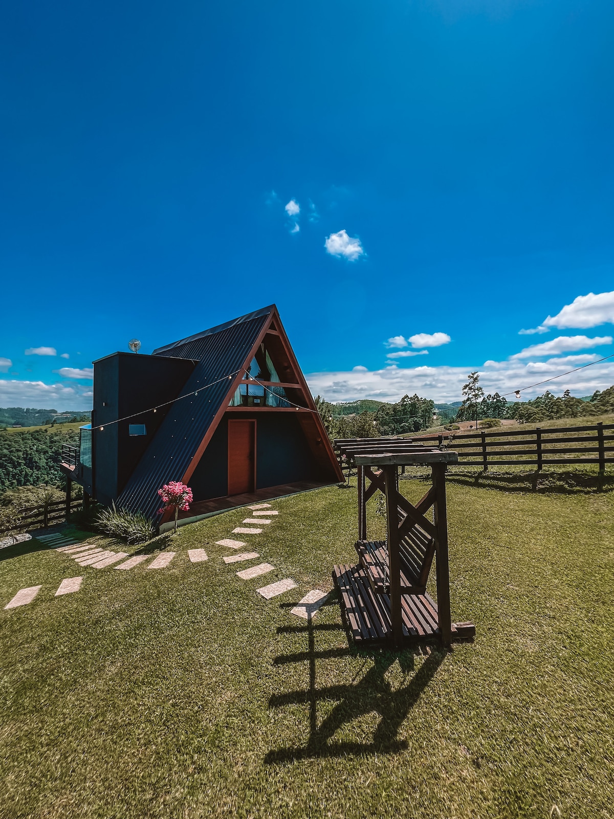 享受大自然的舒適,在按摩浴缸中放鬆身心,欣賞壯麗景色!位於Rio do Campo市,門前有一個池塘、菜園、果園和鞦韆,讓您重新與大自然連接!在我們設備齊全的廚房準備餐點,並在一百萬顆星星下放鬆!來體驗這種體驗吧!