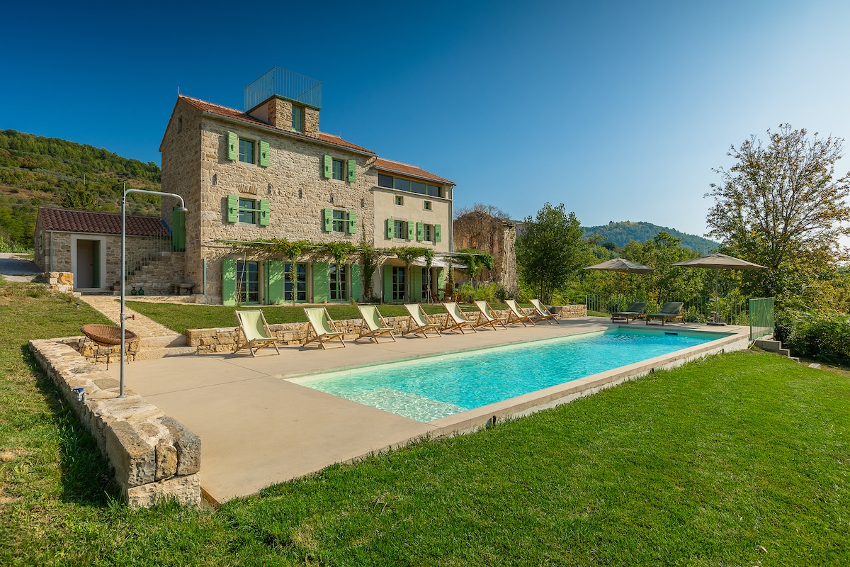 坐落在一個僻靜的位置,是那些尋求在自然環境中完全放鬆的人的理想天堂。然而,它位於最受歡迎的景點附近:歷史悠久的城鎮、海灘、頂級餐廳和伊斯特拉半島西北部的酒莊。 房源的核心是一棟經過徹底翻新的石屋,沉浸在山丘鄉村景觀中,擁有現代設計的室內裝潢、12公尺的泳池和屋頂觀景台。