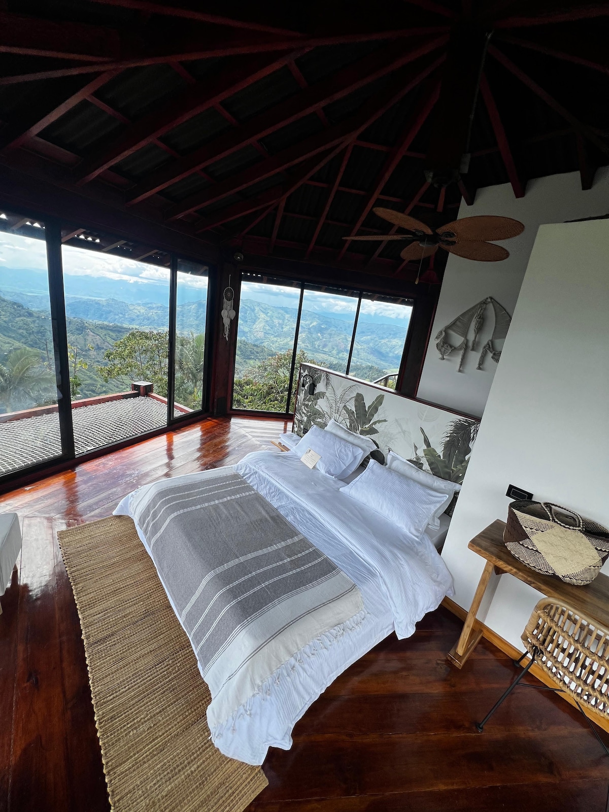 在La Guadua度假,這是一個沒有鄰居的木屋,景觀無與倫比,設備齊全,適合舒適的短期和長期住宿 -快速穩定的Starlink網路 -設備齊全的廚房 - 1 張雙人床、1 張單人床和 1 張沙發床,配有高級床單 -令人驚嘆的景觀 -按摩浴池 -觀鳥保護區 -位於Salamina附近的牛牧場內,距離Medellin 3.5小時車程 -靠近La Merced滑翔傘和Cañon de los Guacharos