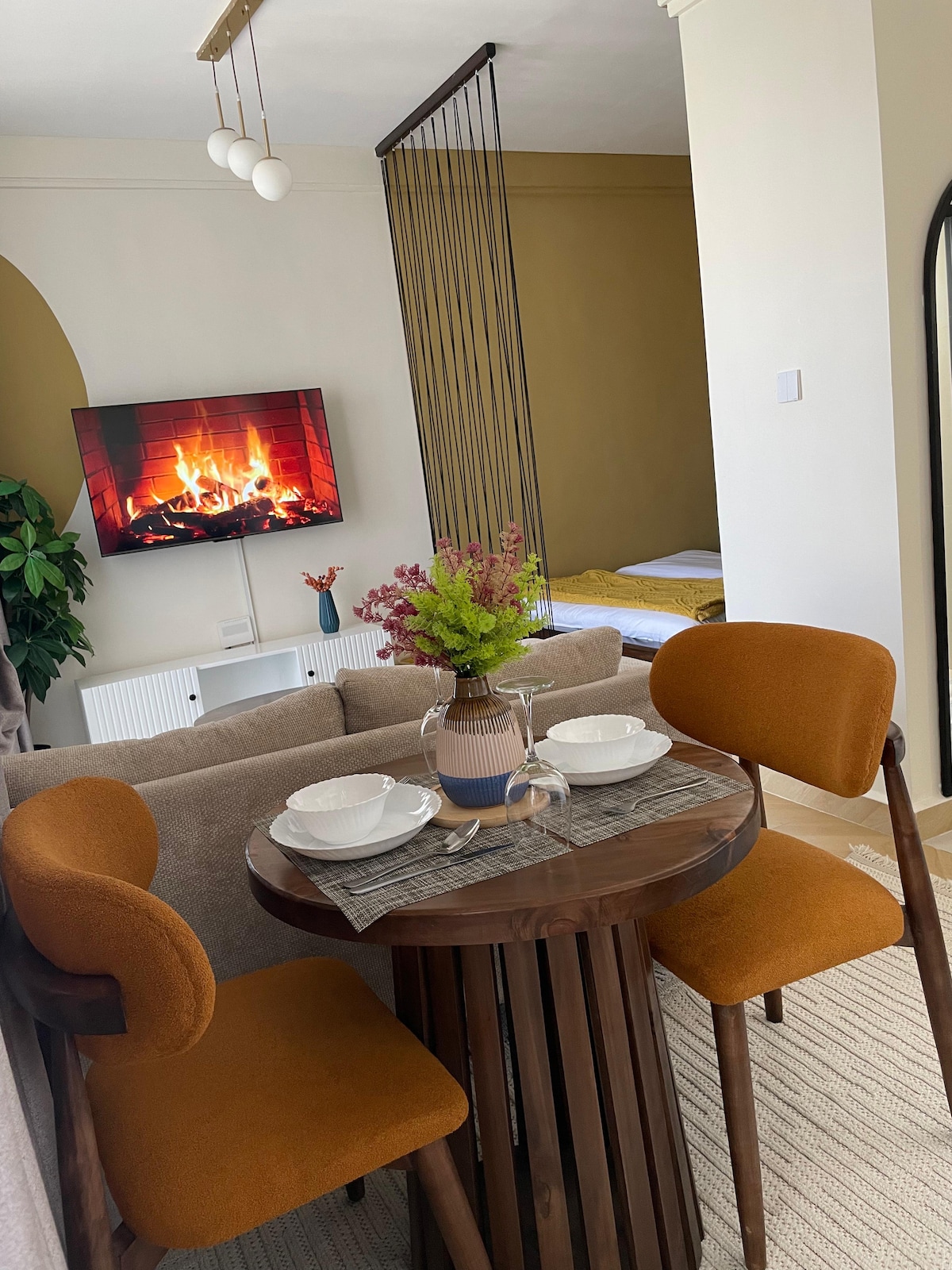 Afri-Naze Home promises to provide comfort and unrivalled experience leaving you yearning for more. This thoughtfully designed apartment features vibrant décor, curated artwork, and comfortable furnishings that celebrate Africa’s rich heritage. The compact layout includes a fully equipped kitchenette, a serene bedroom with a plush queen-sized bed, and a modern bathroom facilities. Just 15 minutes away from JKIA,SGR and the Nairobi National Park.