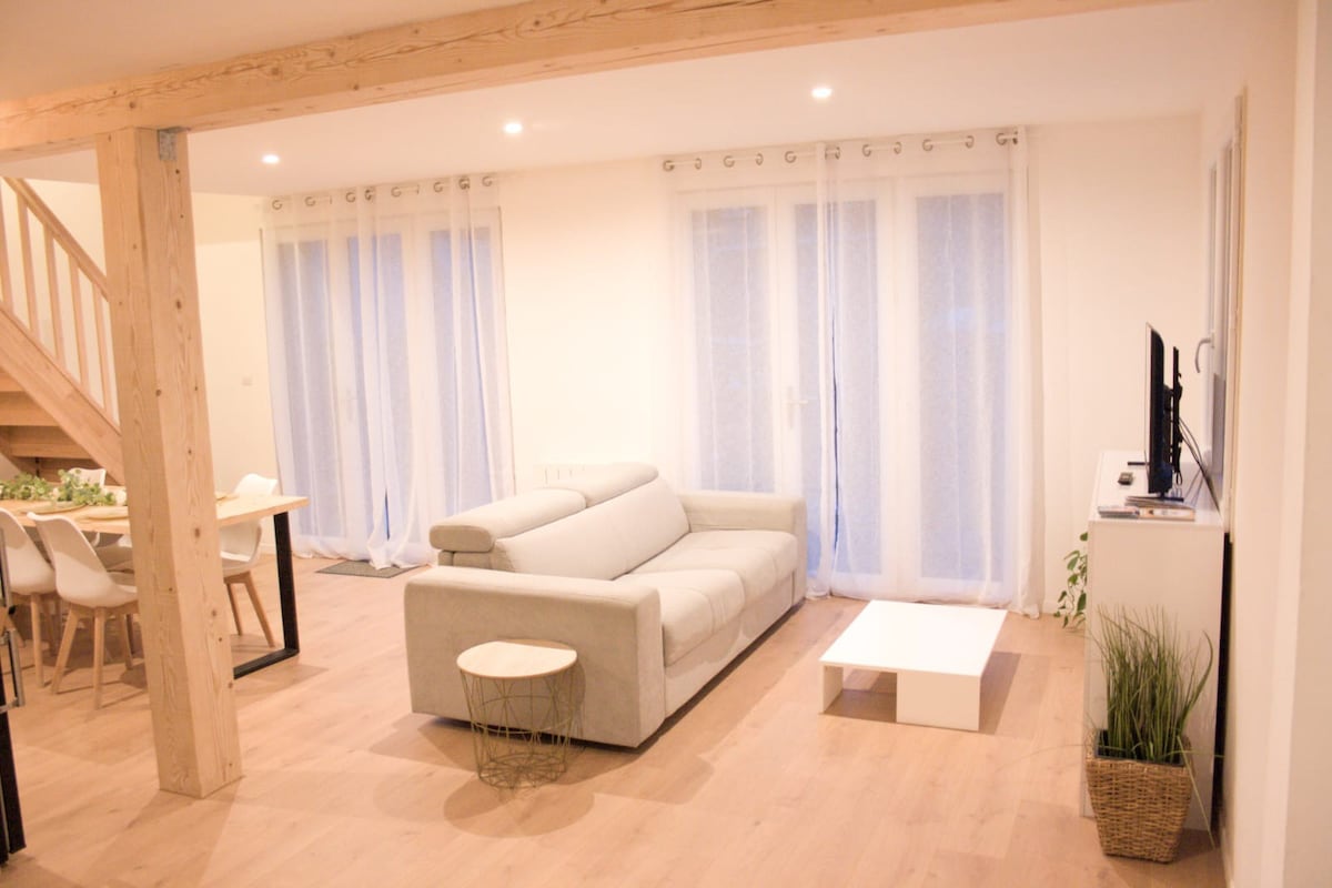65m2 Meublé avec goût, une attention particulière sur de nombreux détails comme les couleurs, le design, l'éclairage et les accessoires de qualité. Vous vivrez un séjour de luxe au cœur de Saint Jean de Maurienne, dans votre maison de ville agencée et équipée selon les standards d'un 4 étoiles où vous pourrez séjourner jusqu’à 4 personnes très confortablement. La situation stratégique de ce lieu vous permettra de rejoindre facilement à pied toutes les commodités et lieux touristiques de la zone.