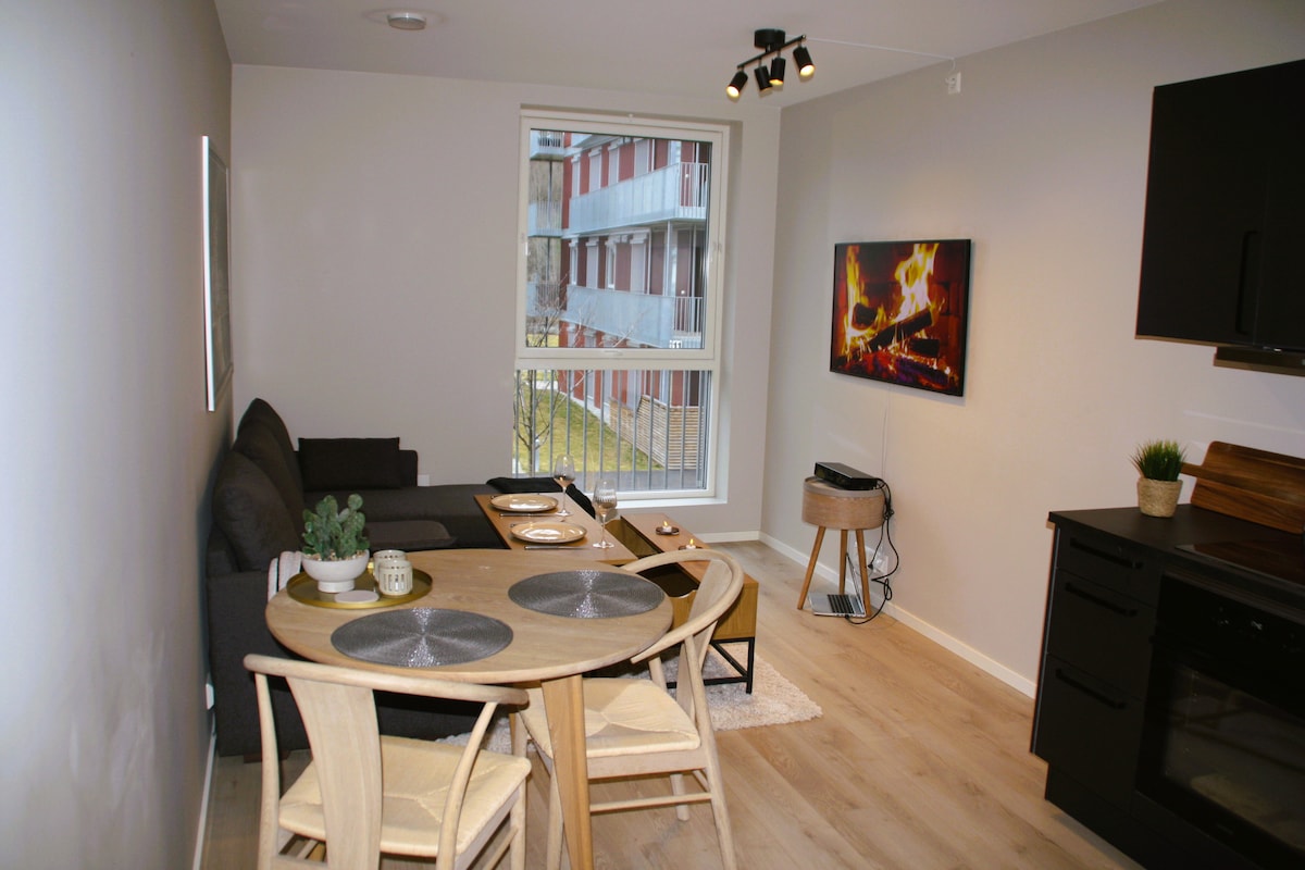 位於鄉村地區約 100 平方公尺的公寓。獨立公寓,一層樓。三間臥室、客廳和廚房。私人露台,可通往烤肉區/露台。步行即可抵達Blaafarveværket / Nyfossum,附近有步道,距離gapahuk很近。 附近有高低攀岩公園。 從公寓可以看到世界上最大的跳台 Vikersundbakken。 離雜貨店不遠。 距離Åmot市中心不遠。
