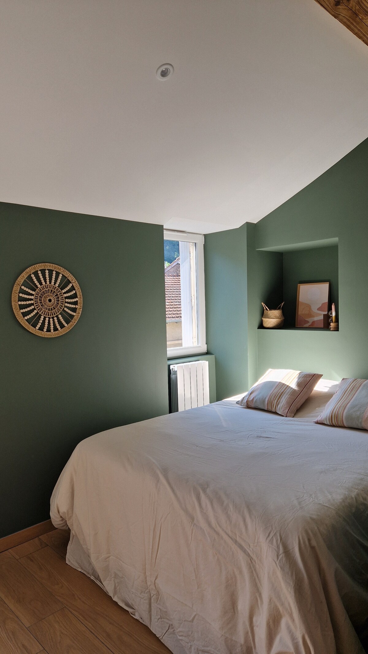 農村地區的Gite ,在綠色的環境中。 靠近Anjou城堡、Palais Facteur Cheval和Peaugres Safari。 保證在5公裏外有平靜和商店。 15分鐘即可抵達A7高速公路。 50平方米的舊農舍,用生態建築翻新,尊重建築物:裸露的石頭、粘土塗料…… -設備齊全的廚房:爐竈、微波爐、微波爐、多餐桌冰箱、多餐桌冰箱、Raclette、咖啡機 -浴室 -廁所分開 -樓上的臥室: 4張90張牀。 電視和DVD播放機 -一樓有沙發點擊