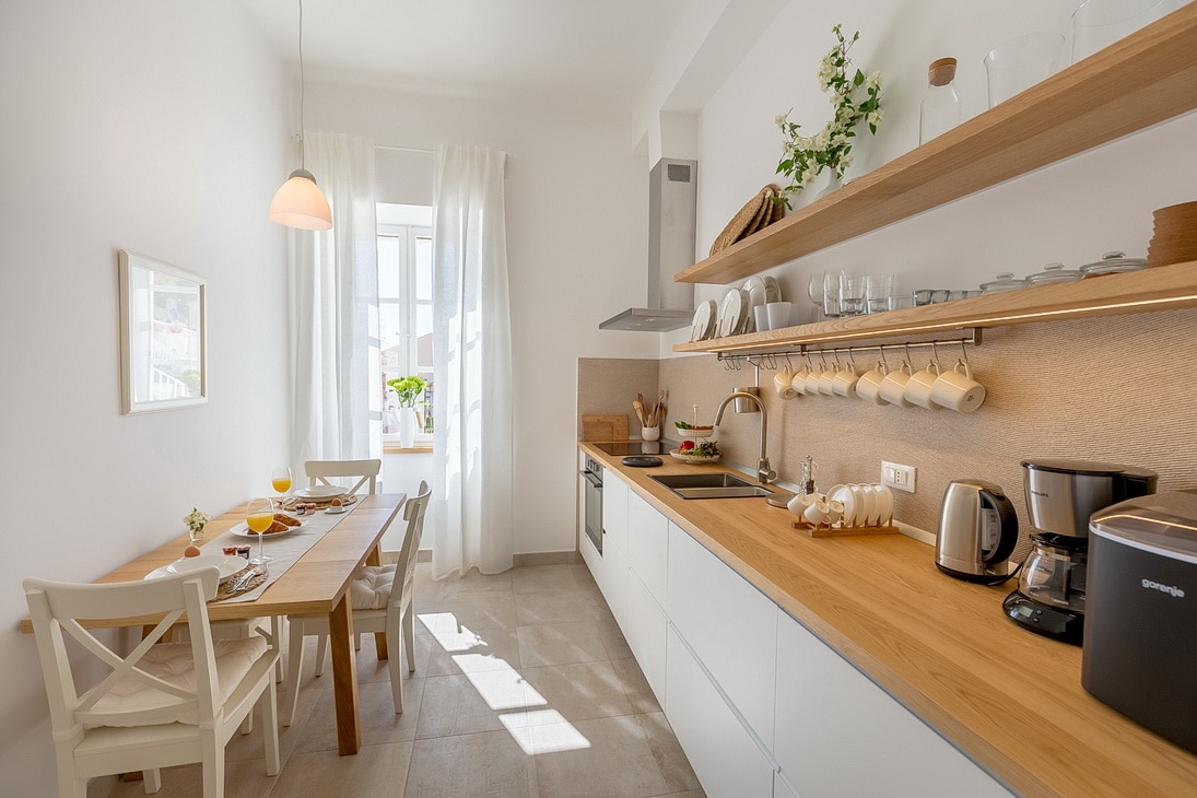 這套優雅的裝潢公寓位於迷人的別墅內,有三間臥室、兩間衛浴、外面有按摩浴缸的寬敞露臺、設備齊全的廚房(洗衣機、微波爐、烤麵包機、咖啡機、水壺)、用餐區域和休息區域。 房源可俯瞰亞得裏亞海和島嶼的壯麗景色。整套公寓都有空調。免費WiFi和洗漱用品。