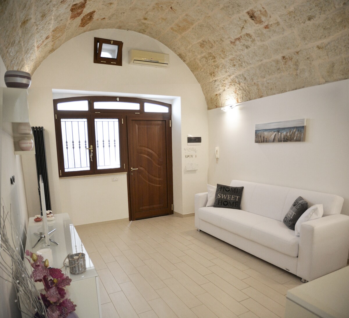 Home Sweet Home位於普利亞地區的莫拉迪巴里(Mola di Bari),是一棟50平方米的獨立海邊村莊房屋。這間最近翻新的房源包括優秀的現代裝飾,與經典建築相輔相成。 Home Sweet Home配有空調和全套家具,包括客廳配有一張沙發床和平面電視;一間主臥室;配有大淋浴間和坐浴盆的浴室,以及配有洗碗機的設備齊全的廚房。