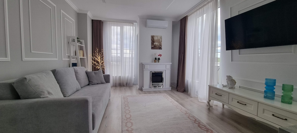 現代化和寬敞的公寓,經典設計,舒適,總是非常乾淨。 位於一棟全新的房屋,內部裝潢豪華經典。 配備長期舒適住宿所需的一切設備: -餐具、餐具 - 洗衣機 -吹風機、熨斗、熨衣板、烘衣機 -咖啡機、水壺 -微波爐、烤箱、爐具 -大電視 -高品質舒適的家具 - 還有更多...