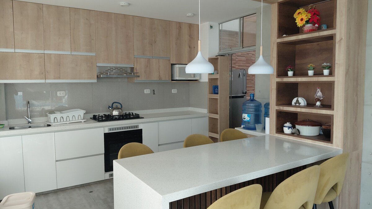 帶全家人來到這個有許多玩樂區的夢幻之地。泳池、海灘、靠近梅希亞 (Mejía)、位於封閉式公寓內、安全的停車位、提供 WiFi、串流媒體和卡拉 OK 設備。可容納 10 人,配有客廳、餐廳、廚房、烤肉區、洗衣房、臥室、海灘遮陽傘,還可使用公寓的泳池。景觀極佳,靠近林蔭大道和步行或騎自行車的區域。靠近四輪摩托車賽道。