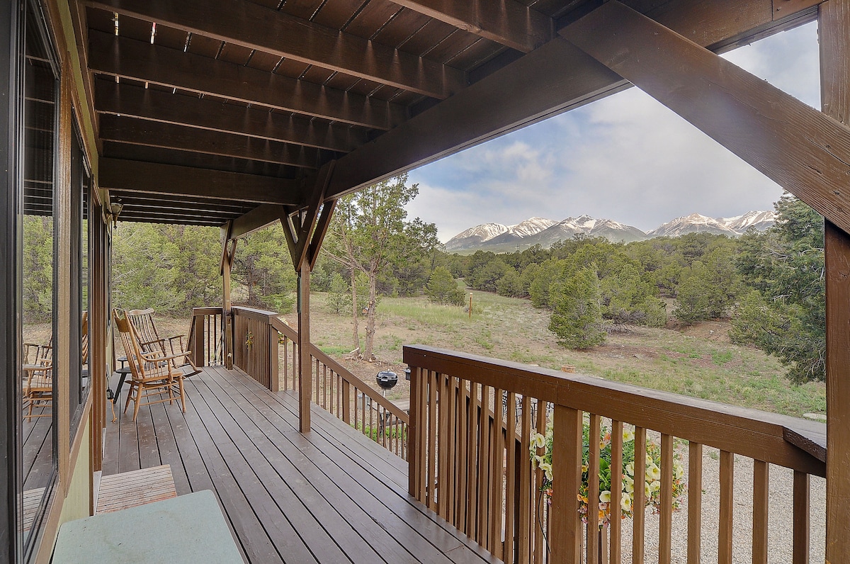 ★Nearby Reservoirs ★Buena Vista ★Mt Princeton ★Dream Stream ✓Short drive to world class fishing, hiking, biking, hot springs, snowshoeing, horseback riding, cross country skiing, rock climbing, white water rafting, off roading, ziplining, dining and shopping ✓MOUNTAIN VIEWS from the large backyard and 2nd floor balcony ✓Grill + Firepit ✓Smart TV: Hulu, Netflix & Disney+ provided ✓Cozy pellet stove ✓Brand new comfy beds: 1 king, 2 twin ✓Equipped Kitchen ✓Fast Wifi ✓Keyless entry ✓Garage