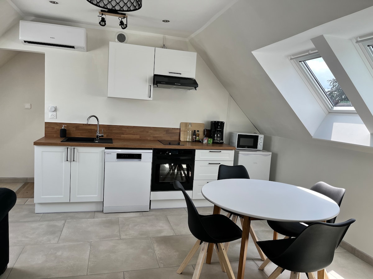 Découvrez le confort ultime dans notre appartement de 80m2, situé entre le Louvre Lens et le stade de Lens. Profitez d'un jacuzzi 2 places avec 95 jets, d'une TV OLED 4K de 165cm. La cuisine équipée. La salle de bain offre une douche italienne, des toilettes suspendues, un miroir LED anti-buée et un sèche-serviette. La chambre dispose d'un grand lit 180x200cm un filet suspendu de 10m2 avec une toile 260cm d'un canapé, d'une table basse, et d'une machine Nespresso un vidéoprojecteur UHD 4K HDR