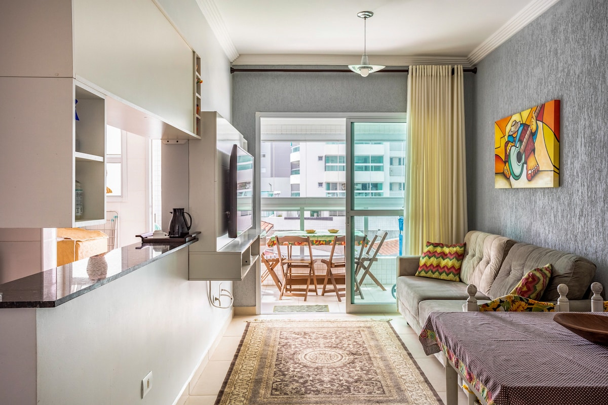 在這個海濱小屋中,伴隨著海風醒來,位於Praia Grande的Caiçara街區。 配有烤肉的美食陽臺,是家人或朋友聚會的完美場所。 Apê區最多可容納6位房客,配有1間臥室、配有沙發床的客廳、設備齊全的計劃廚房和浴室。 為了方便起見,我們提供全套床、桌子和浴巾。 在公寓內,您可以使用游泳池和停車位。 這些房源距離沙灘只有幾步之遙。
